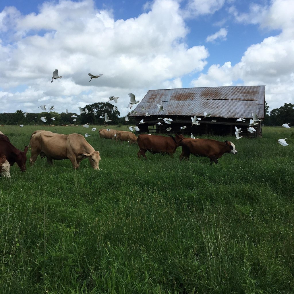 Brookshire Farms, Artisan Grass-fed Beef prairie forage field, Meaux, Vermillion Parish, Louisiana
