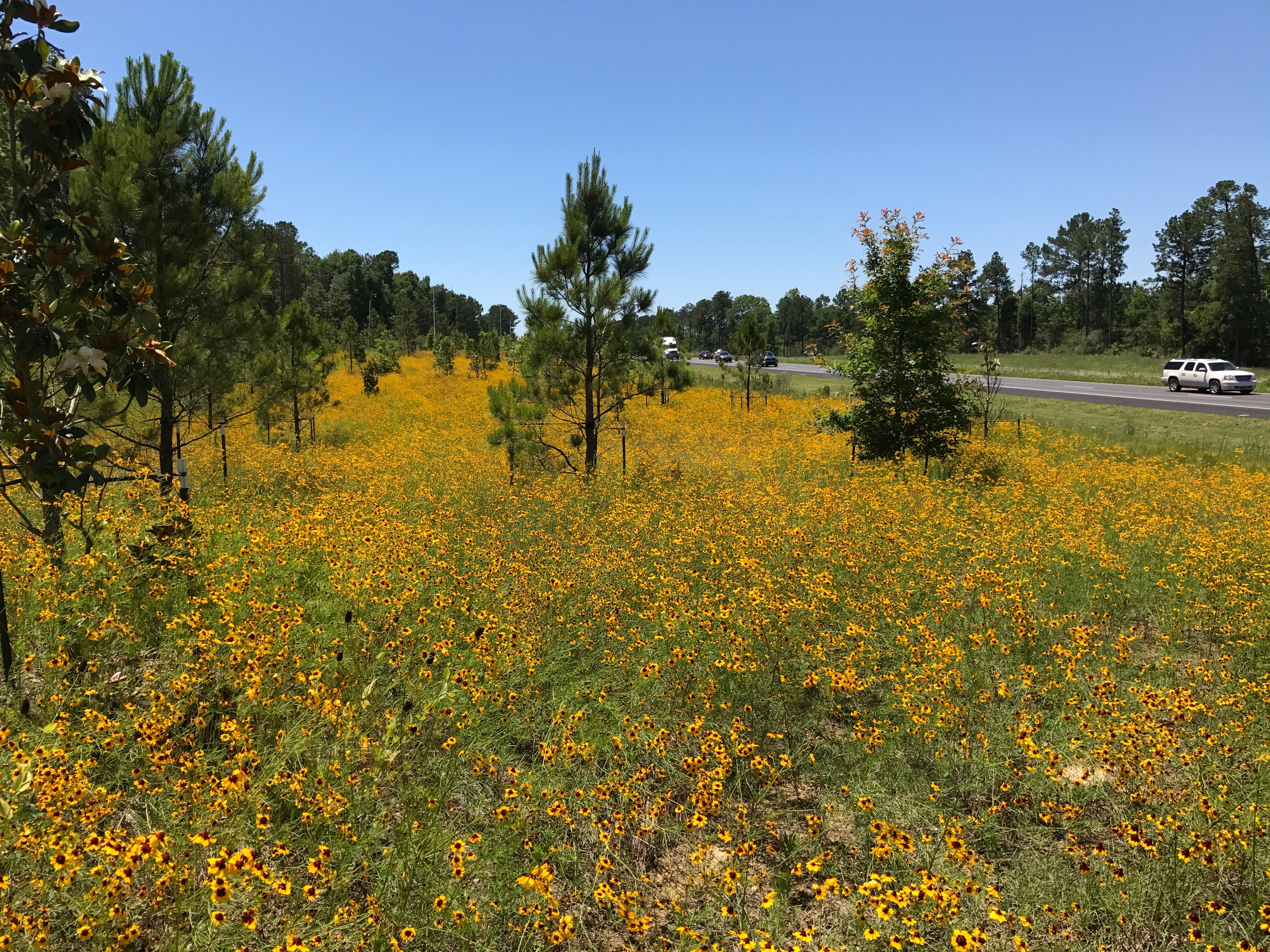 I-20 in Tremont, Lincoln Parish, Louisiana, Welcome Center and Rest Stop, 3/4 mile of prairie roadside right of way, 2017