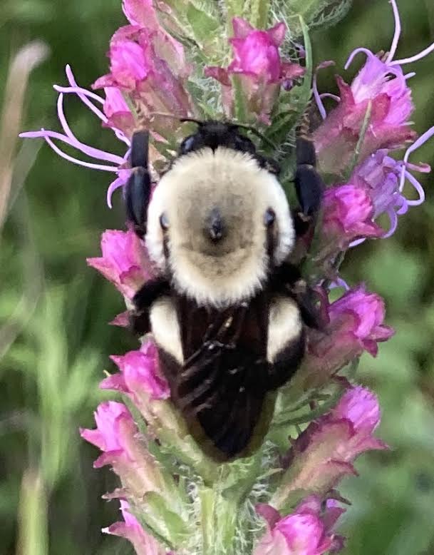 Bumble bee on Kansas Blazingstar Liatris pychnostakya at the City of Mandeville Conservation Garden, St Tammany Parish, La