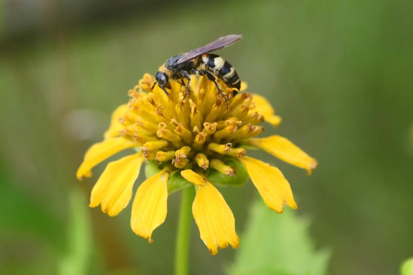 Eryngium yuccafolia with Odontomyia cincta, Soldier bee