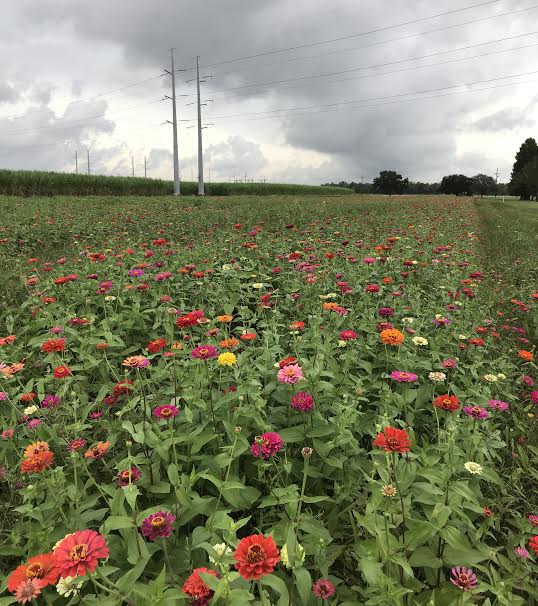 Pollinator-color garden St John Parish, La, zinnias, cosmos, and Mexican sunflowers, November 2017