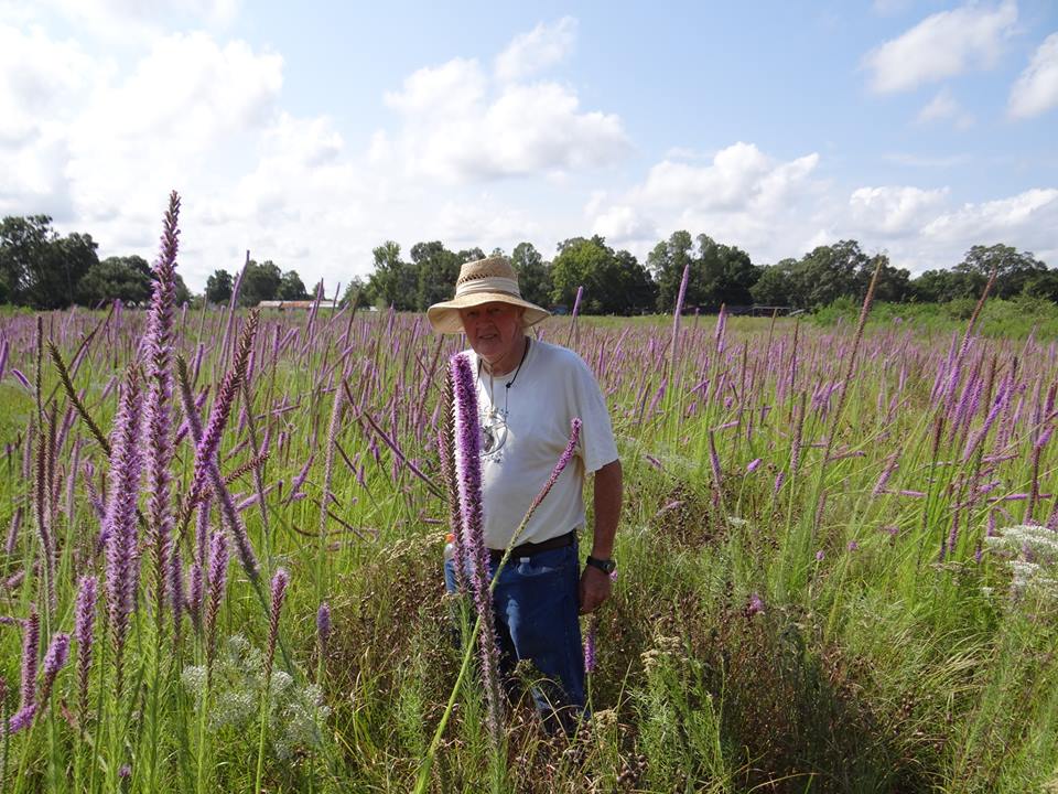 Dr. Charles Allen in his self-regenerated native meadow, Allen Acres, Vernon Parish, Louisiana
