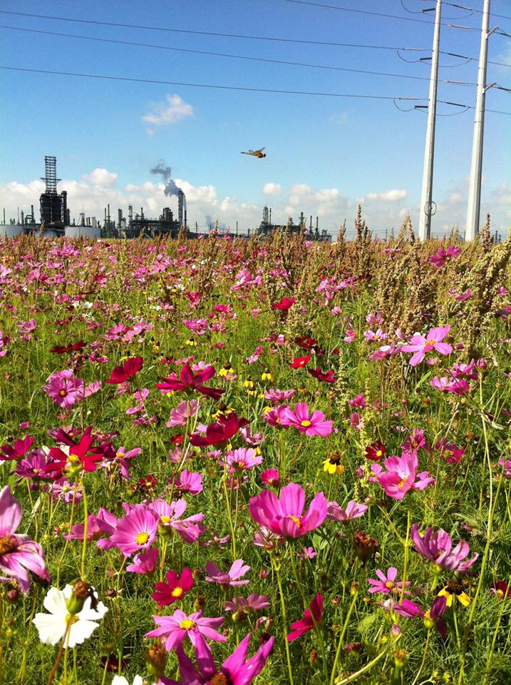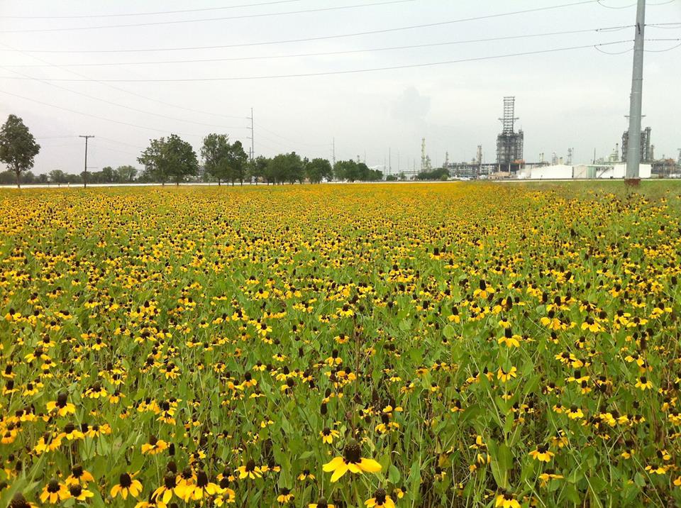 Marothon Oil Refinery pollinator-color fields with Rudbecia and Cosmos