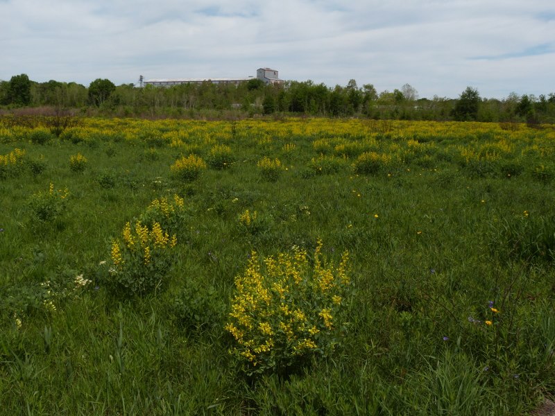 Blue False Indigo Baptisia australis in mass of GreySunflower, Pastorek seed farm, Pearl River County, Mississippi