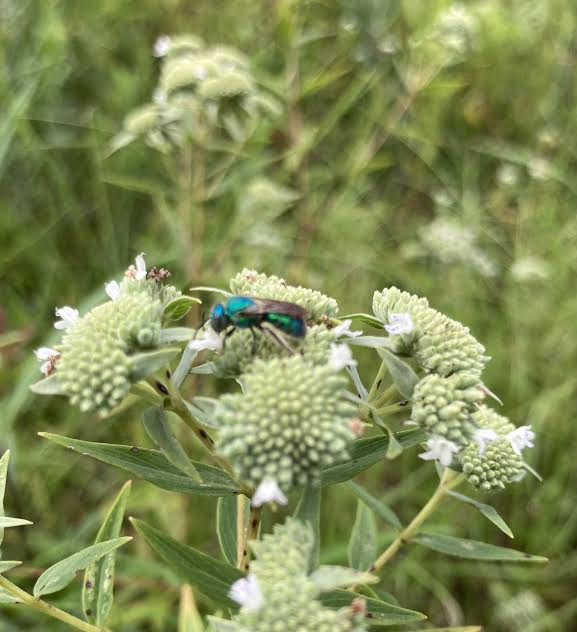 the ultra-rare Metallic Sweet Bee Augochloropsis sumptuosa on Pychnanthemum muticum at Pastorek seed farm, Carriere, Pearl River County, Ms.