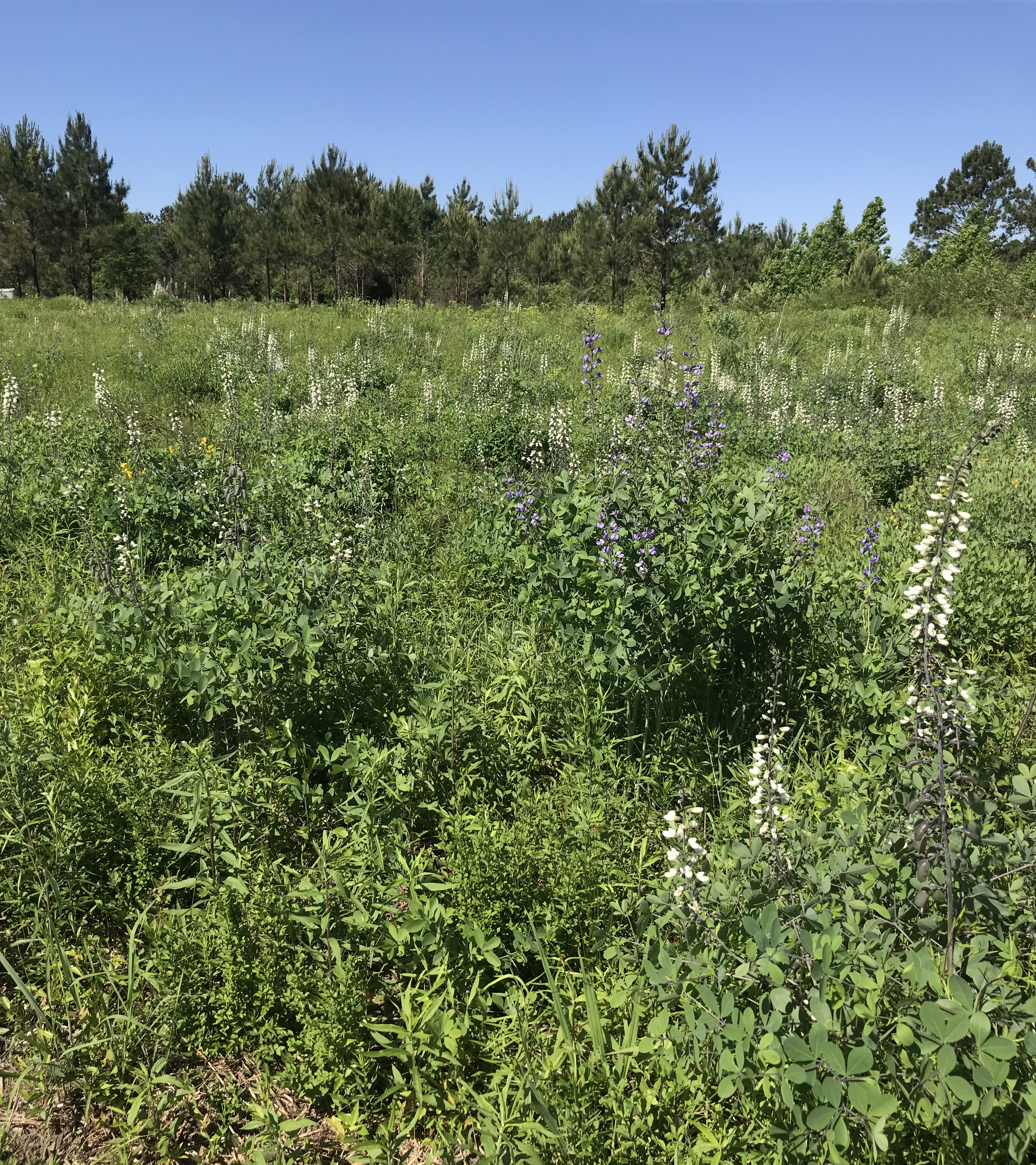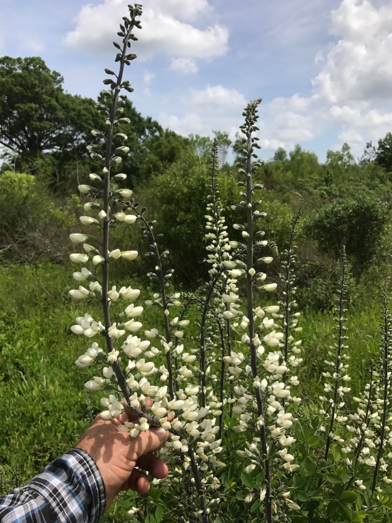 white and blue baptisia at the seed farm, Henleyfield, Mississippi