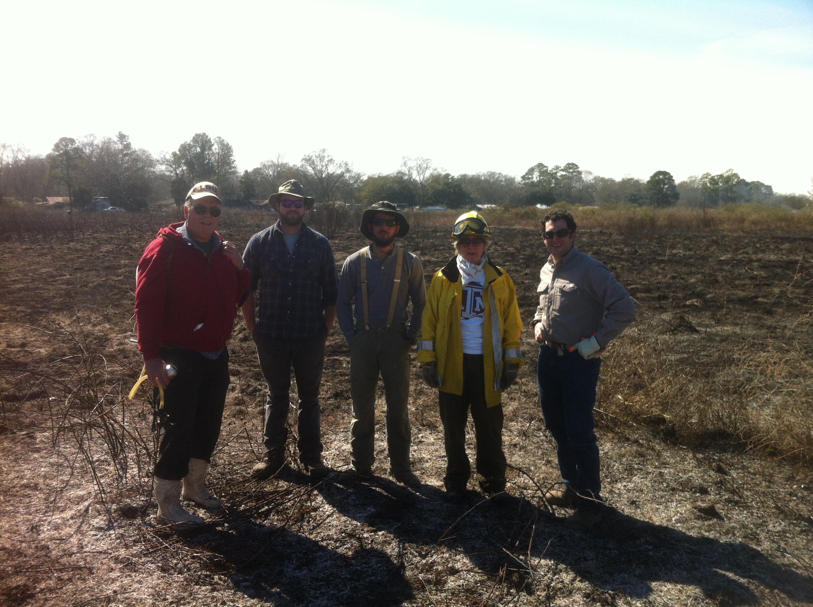 Burnt out burn crew, Cajun Prairie project site, 2015, Eunice, St. Landry Parish
