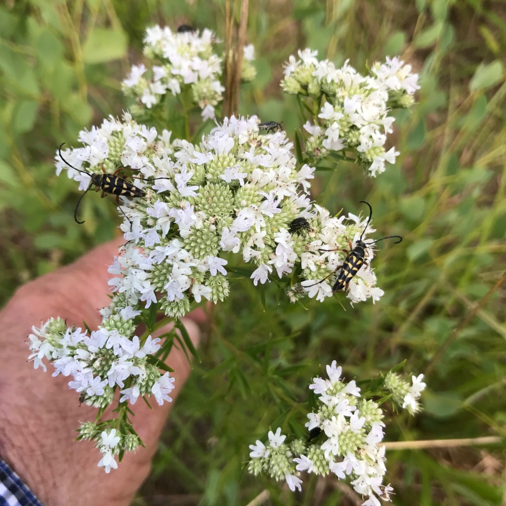 Longhorn beetles on Narrowleaf Mountain Mint, Pychnanthemum tenuifolium, Pastorek seed farm, Pearl River County, Ms.