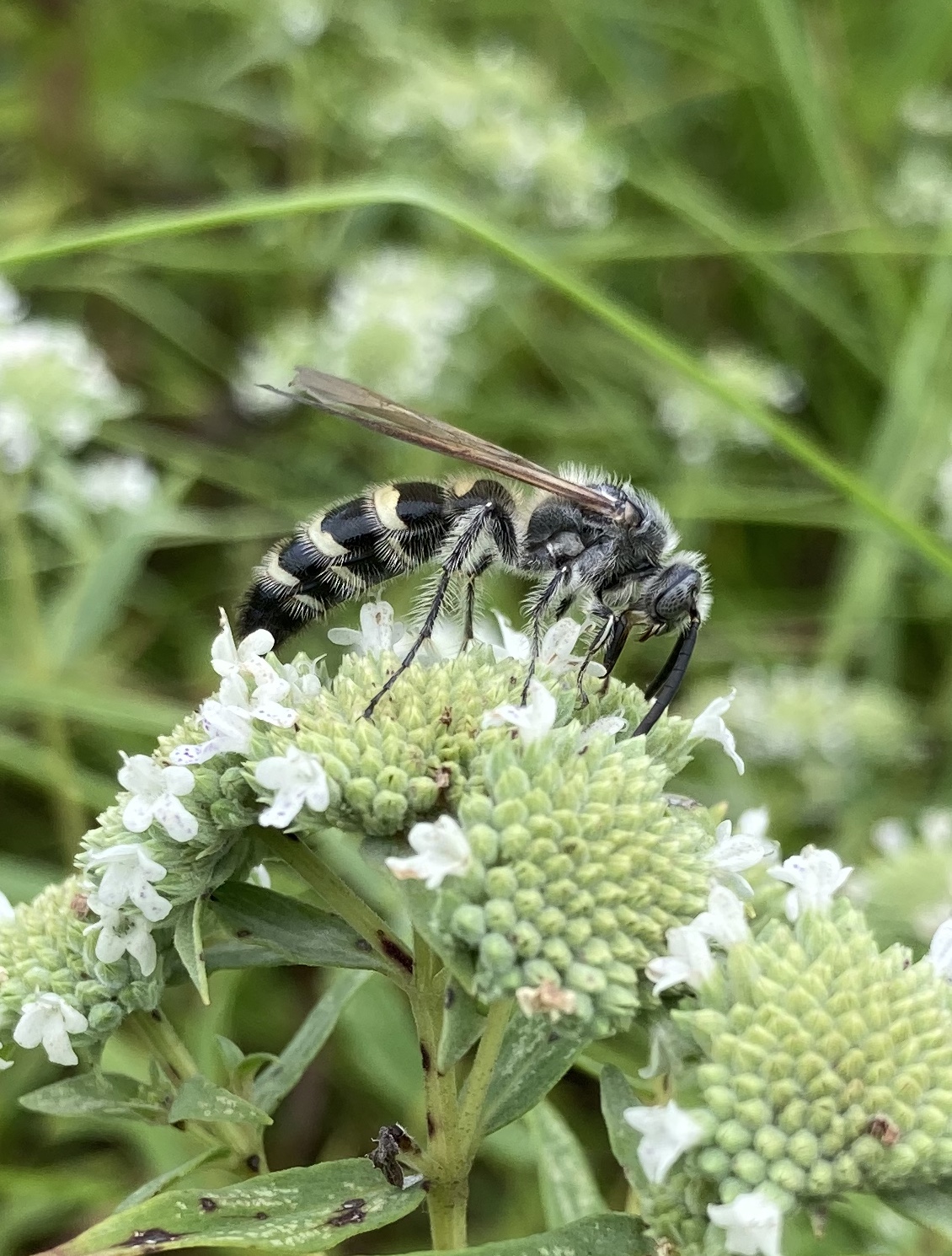 Mountain Mint, hyper-pollinator species, with Dielis plumipes, Feather-legged scoliid wasp