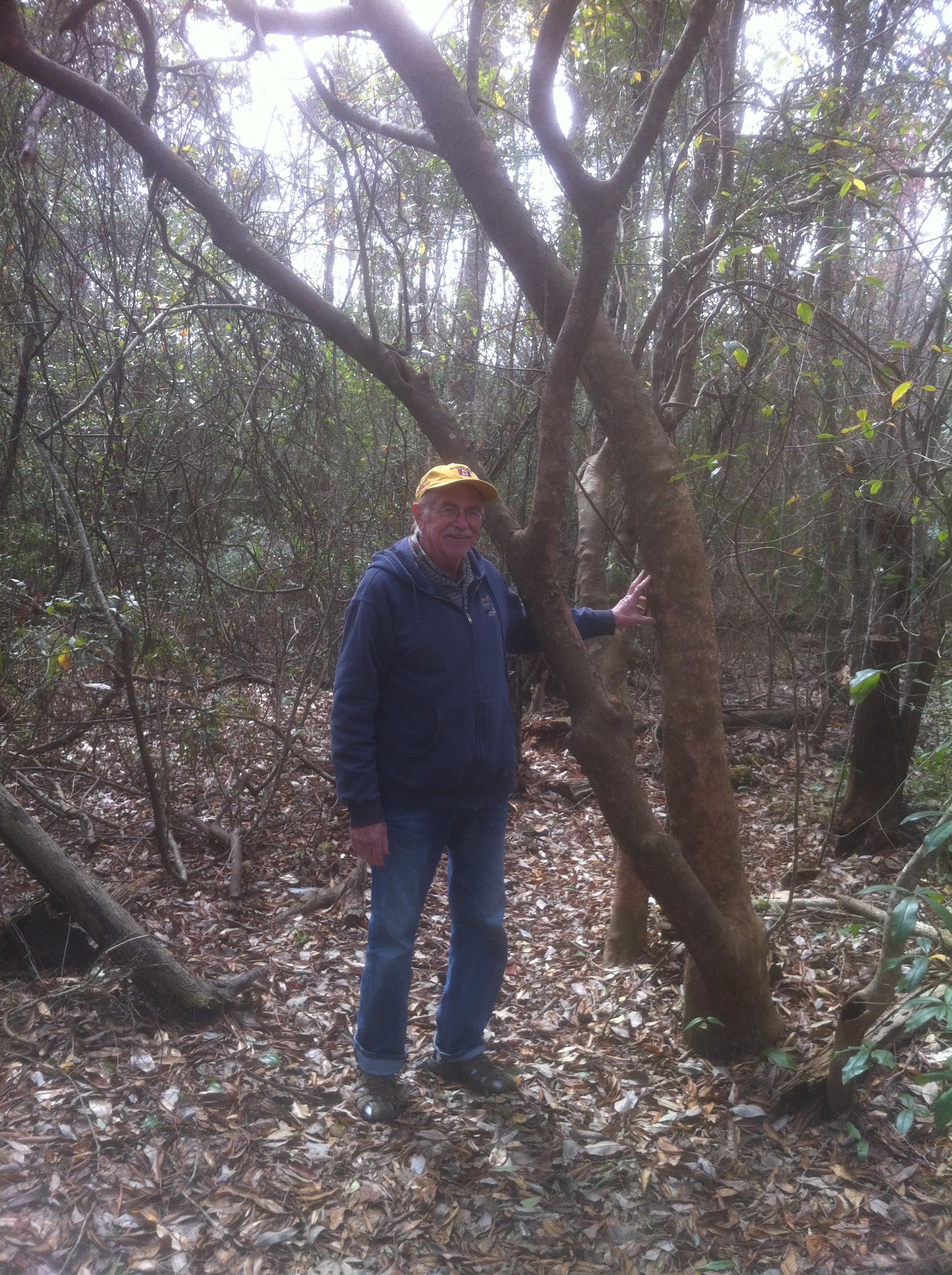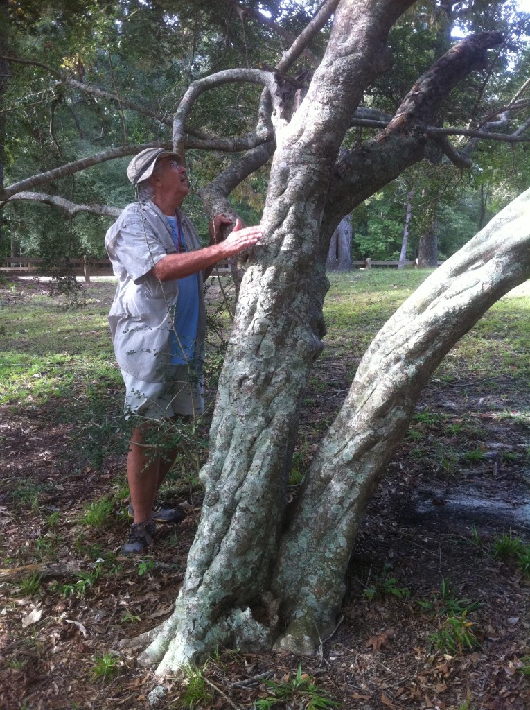 Jim “Possum” Foret wanting to climb up a giant Yaupon tree