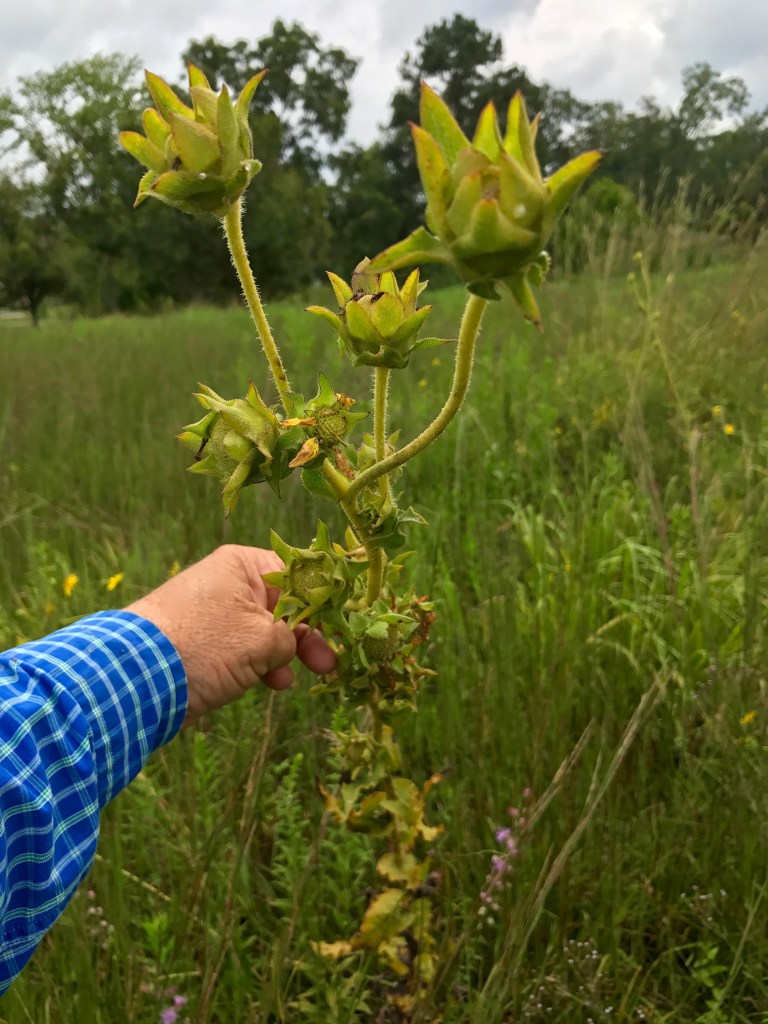 Chris Reid, Botanist, La Wildlife and Fisheries, with Silphium asteriscus clump at Pastorek seed farm
