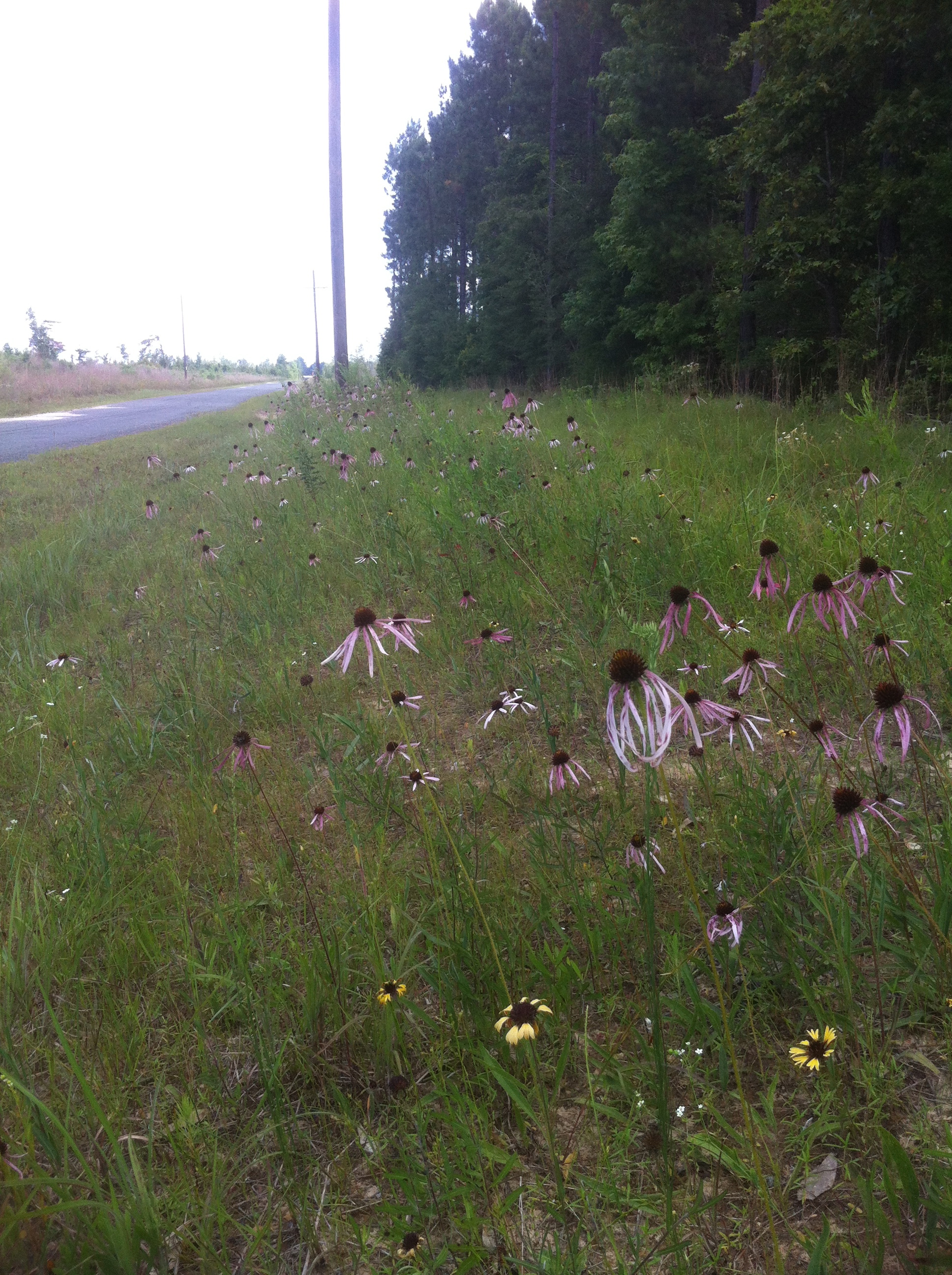 Cajun Prairie restoration project site pale coneflower with littleleaf sensitive briar schrankia microphylla