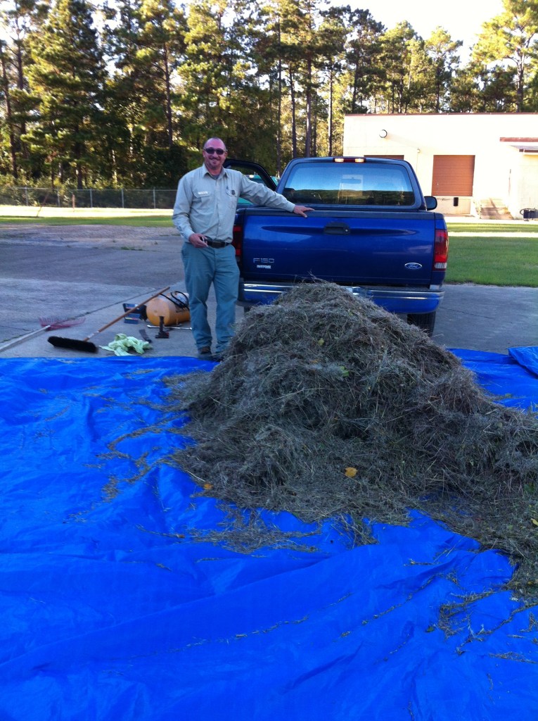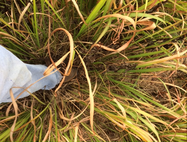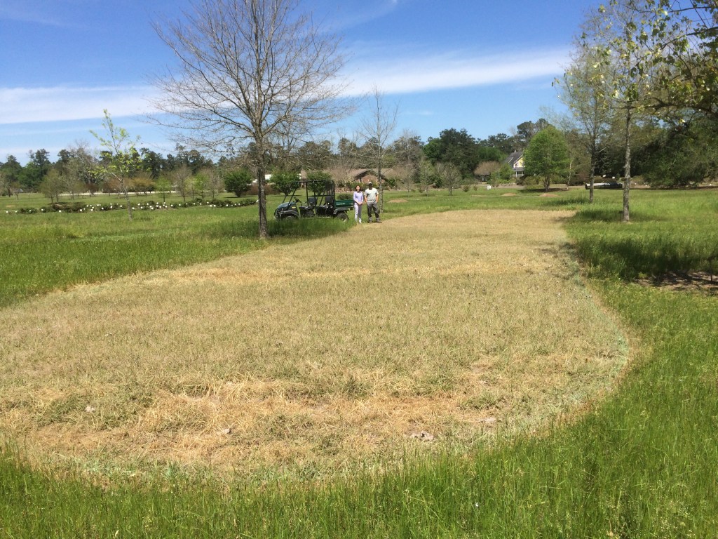 native Bluestem grass demonstration garden site post-spray, with Dr. Yan Chen and her associate, LSU Hammond Research Station, Tangipahoa Parish, La 2017