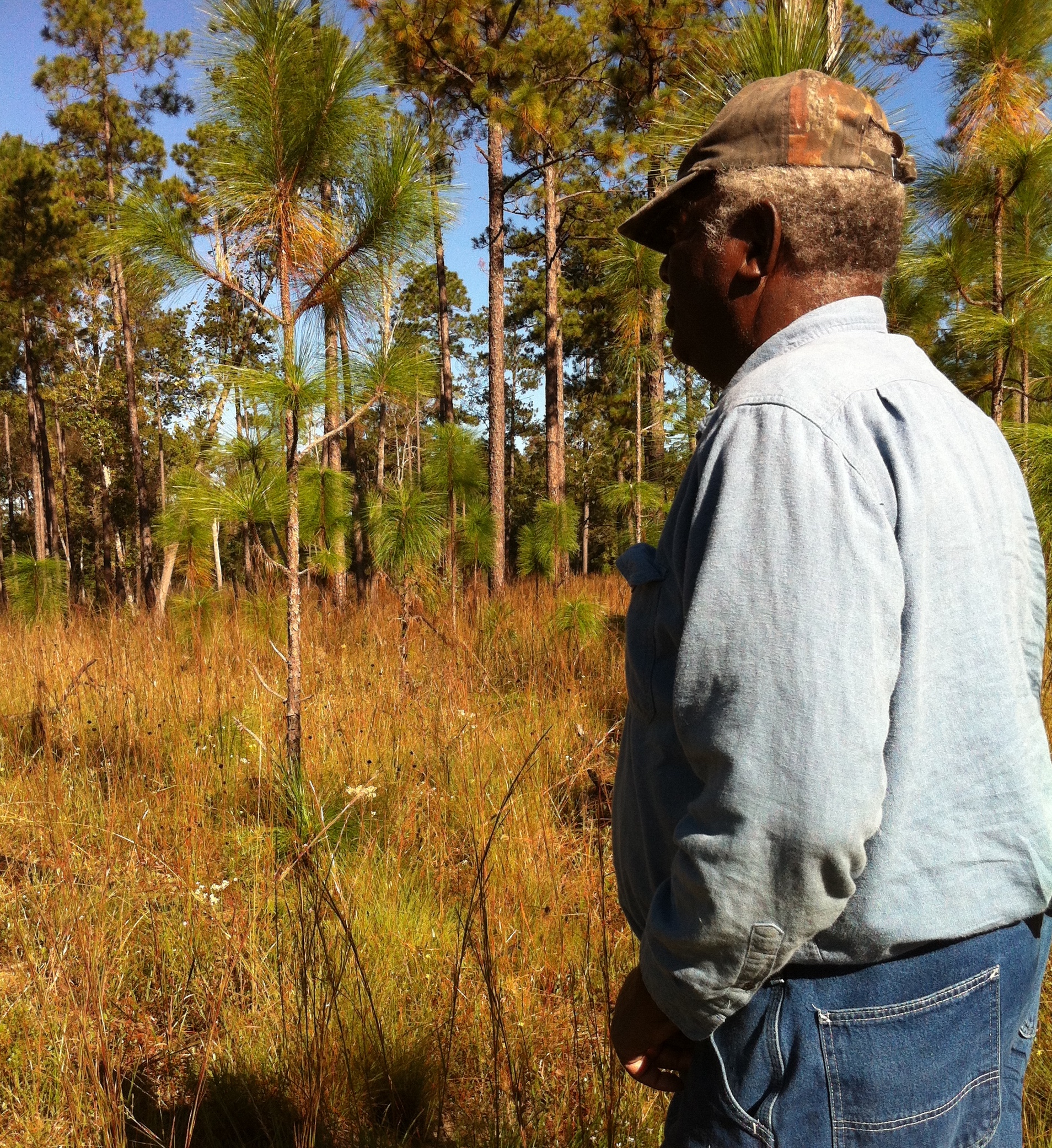Jim McGee and Long leaf pine at Buttercup Flats, DeSoto National Forest, seed collecting for the federal govt