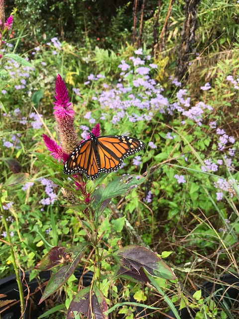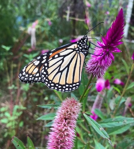 Monarch on celosia Amazon Giant