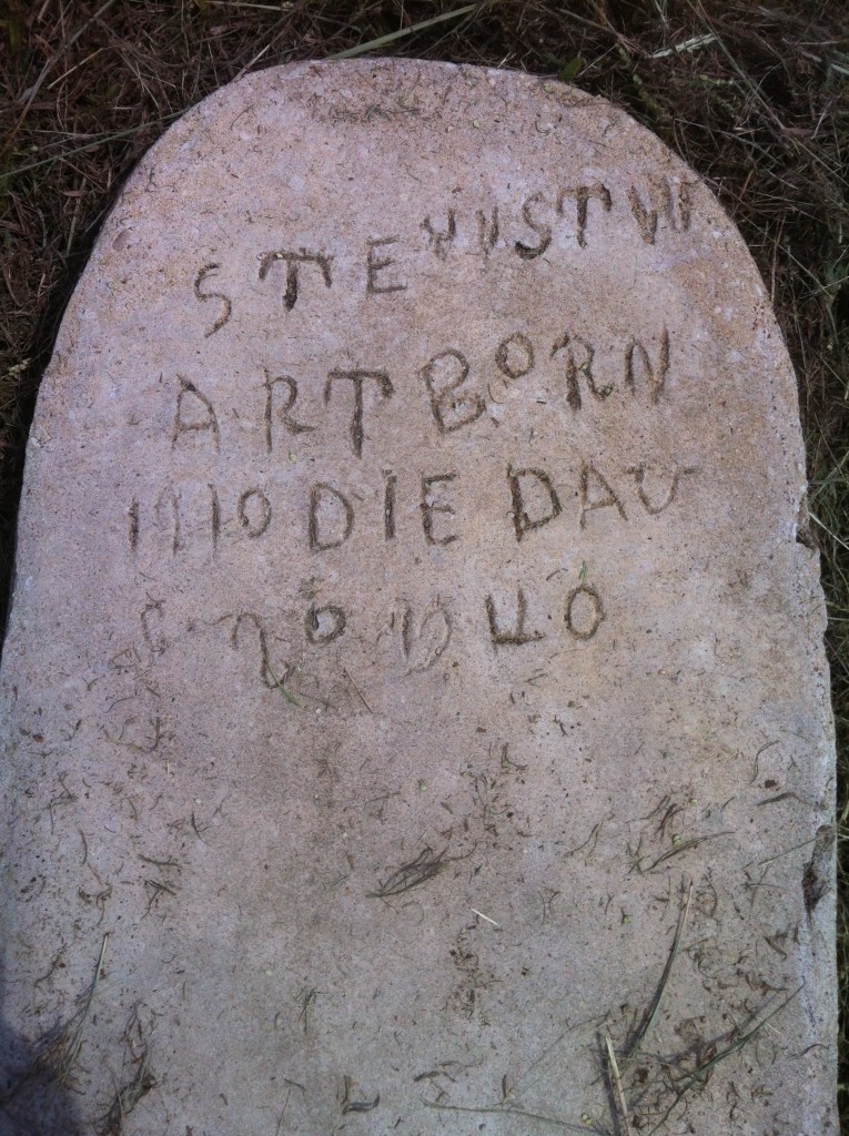 Cemetary headstone in Black Belt prairie at a church on highway 28, Sumter County, Alabama