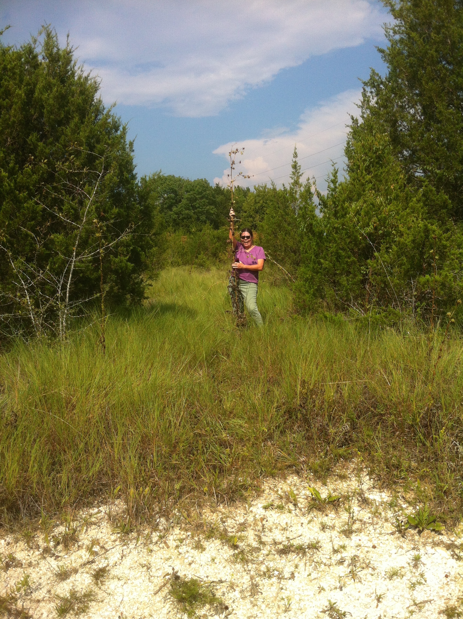 Gail Barton in Jackson prairie site with Mississippi Native Plant Society, Scott County, Mississippi.