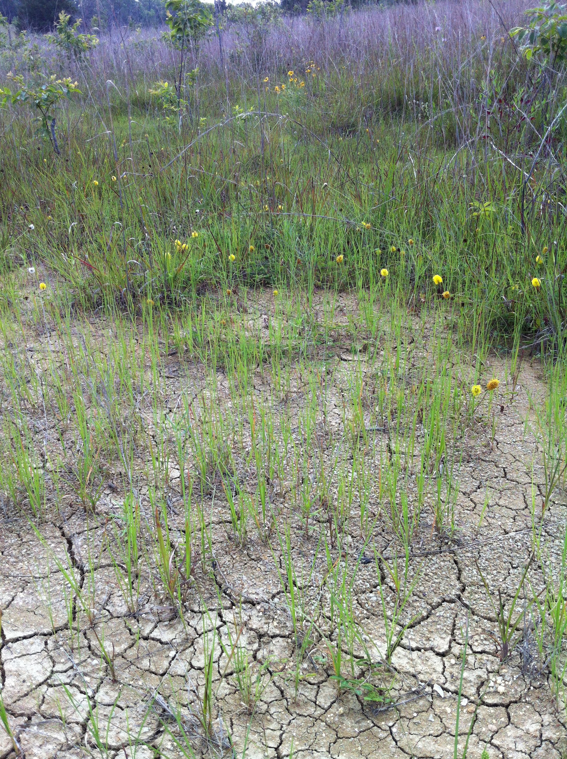 Shrink-swell soil of Copenhagen prairie with Neptunia lutea, Blackland prairie, in Caldwell Parish, La