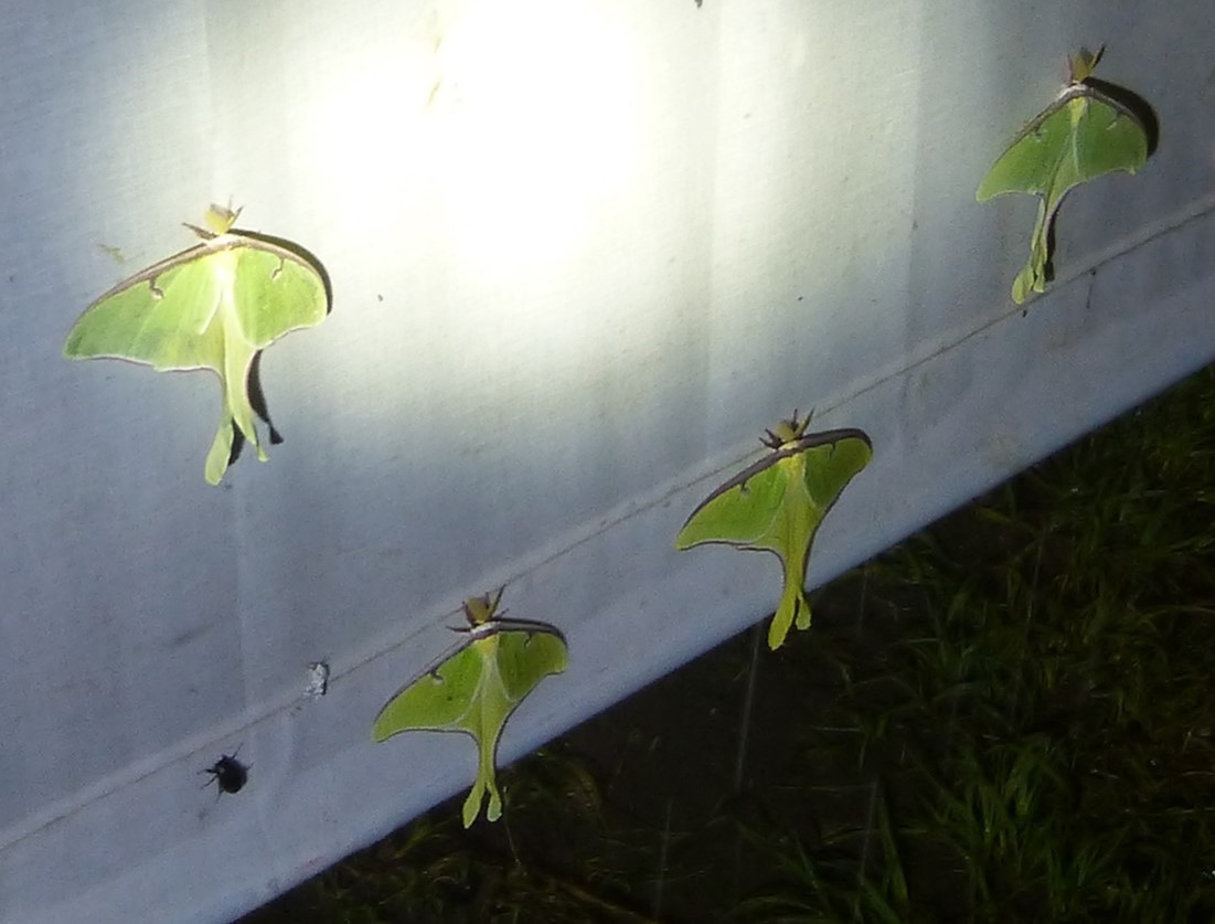Luna Moths at Charles Allen’s Allen Acres, on his canvass “sheets”.