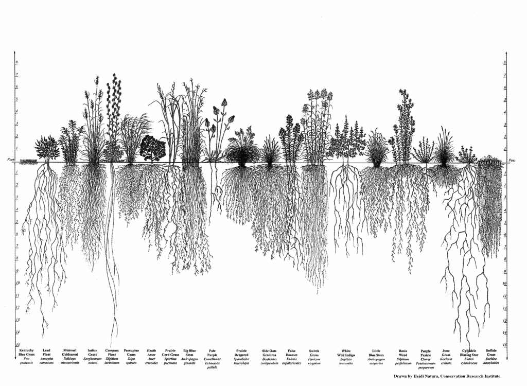 Prairie root depth demonstration at Fuselier Farm, Eunice, La