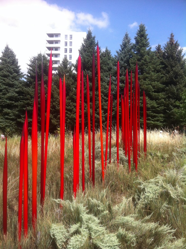 Chiluli glass sculptures in shortgrass prairie display, Denver Botanic Gardens, 2016